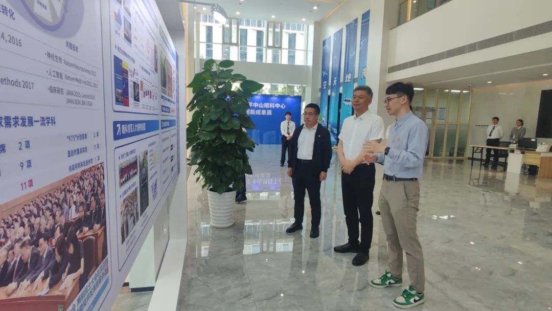 在中山大学中山眼科中心人工智能实验室,许俊松一行就产业基础、合作方向、人才培养等事宜与实验室相关负责人员进行交流。许俊松表示,希望双方积极探索移动眼科医院及眼科机器人研发应用等方面的合作,以医疗AI+数字安全新模式助推经开区产业发展。