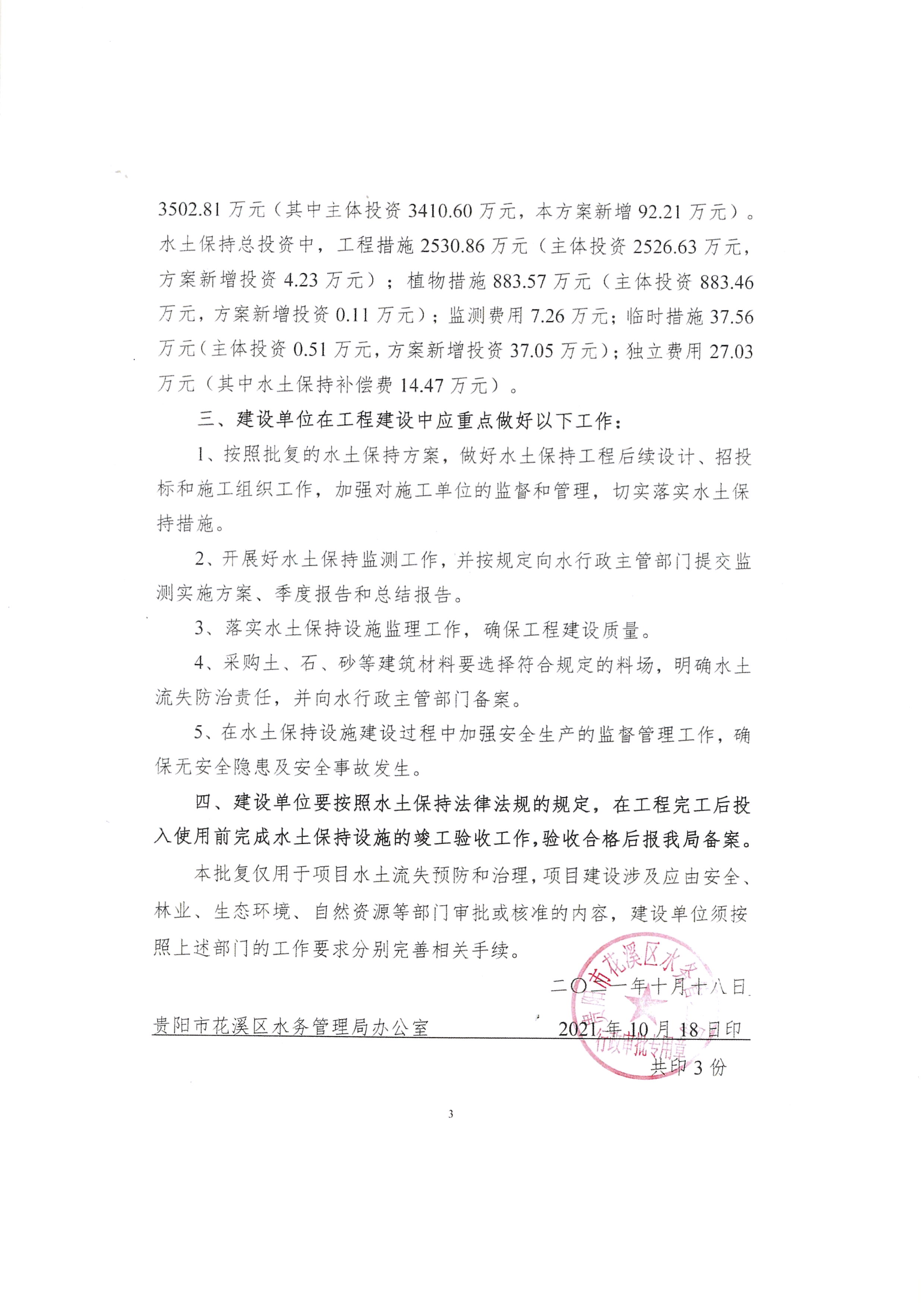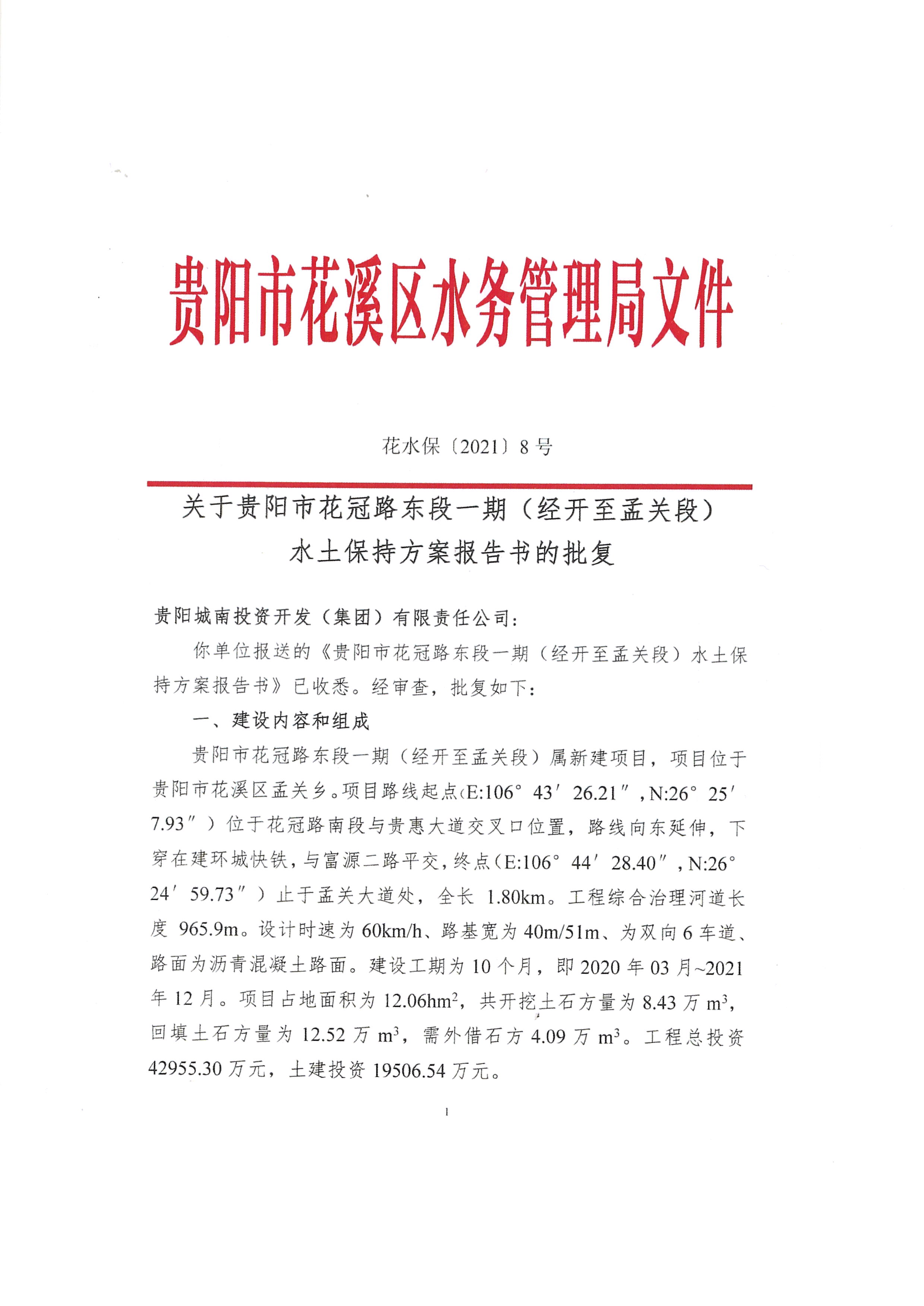关于贵阳市花冠路东段一期(经开至孟关段)水土保持方案报告书的批复
