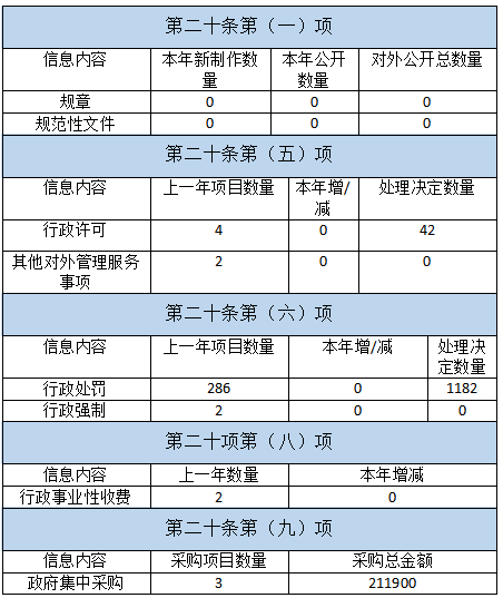 2020年度,根据省、市、区政务公开工作要求,花溪区综合行政执法局制定信息公开发布规范、审核以及责任追究有关制度,对涉及本单位的机构设置、行政许可、行政处罚、行政强制、行政事业性收费、行政复议、行政诉讼等信息进行严格审核后,公开发布在“中国花溪政府门户网站”“贵州省‘双随机、一公开’监管平台”“贵阳市公共资源交易中心”等网站上。